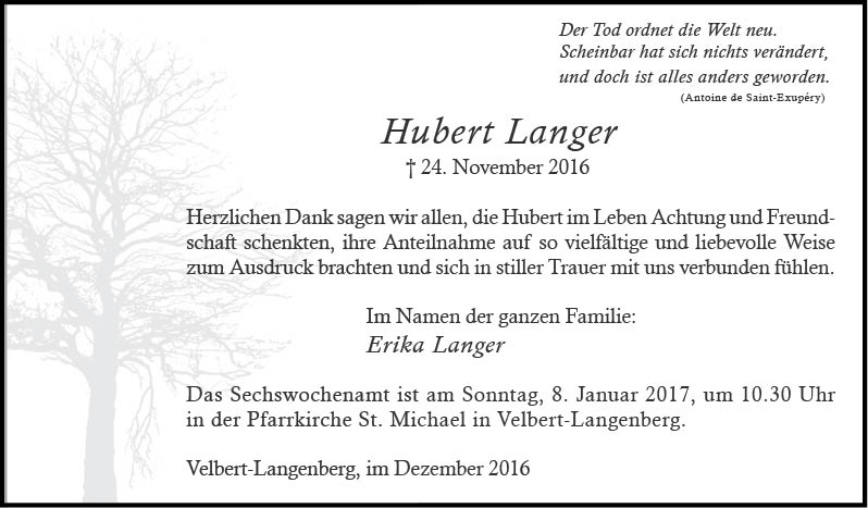 Hubert Langer (Danksagung)