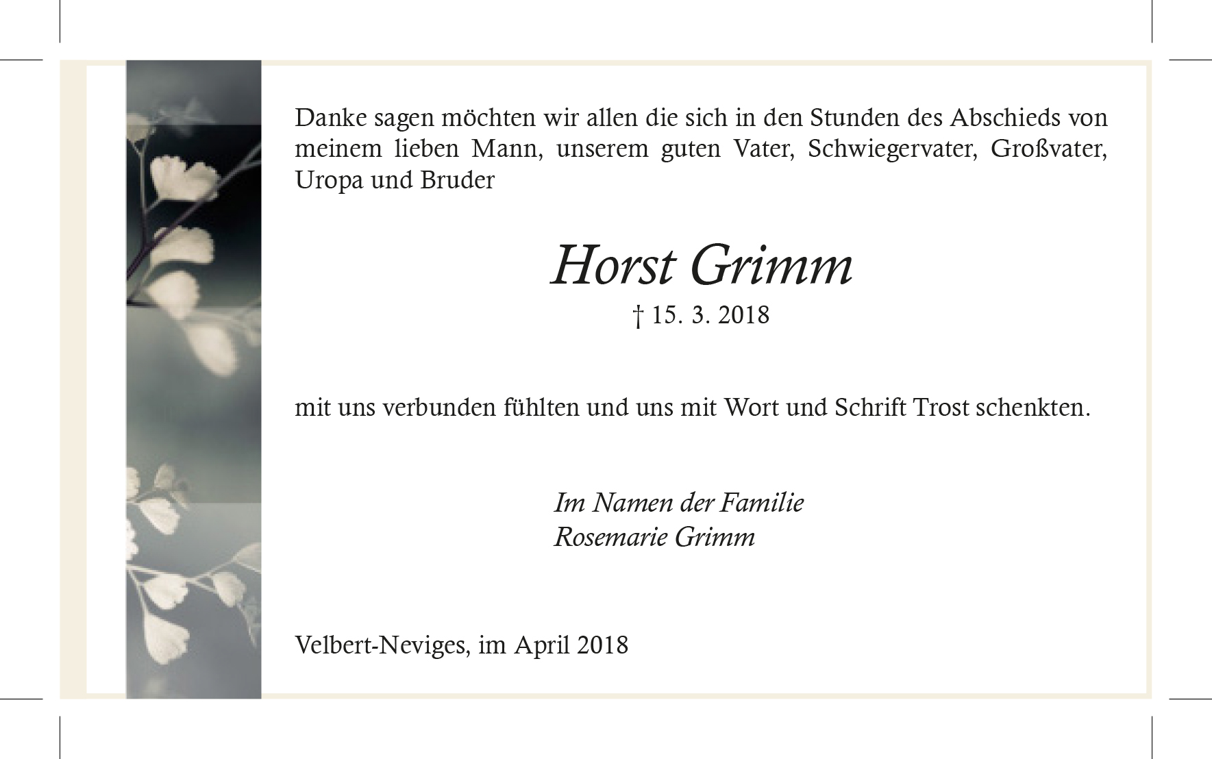 Horst Grimm (Danksagung)