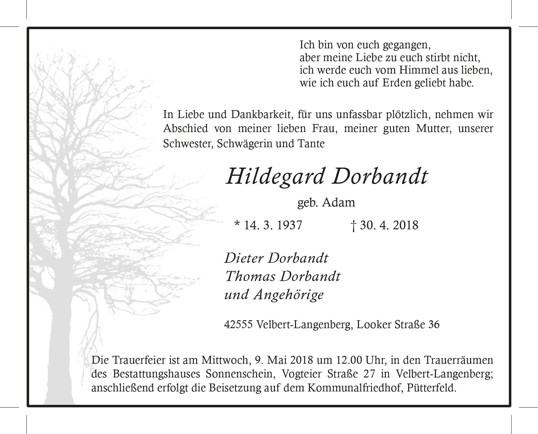 In Gedanken habe ich euch stetig, jedes mal wenn ich an euch vorbeifahre und denke anzuhalten um mal kurz „Hallo“ zu sagen… Ich möchte mich hiermit für die sehr tolle Kindheitserinnerungen bei Ihnen bedanken, möge Ihre Frau in Frieden leben.