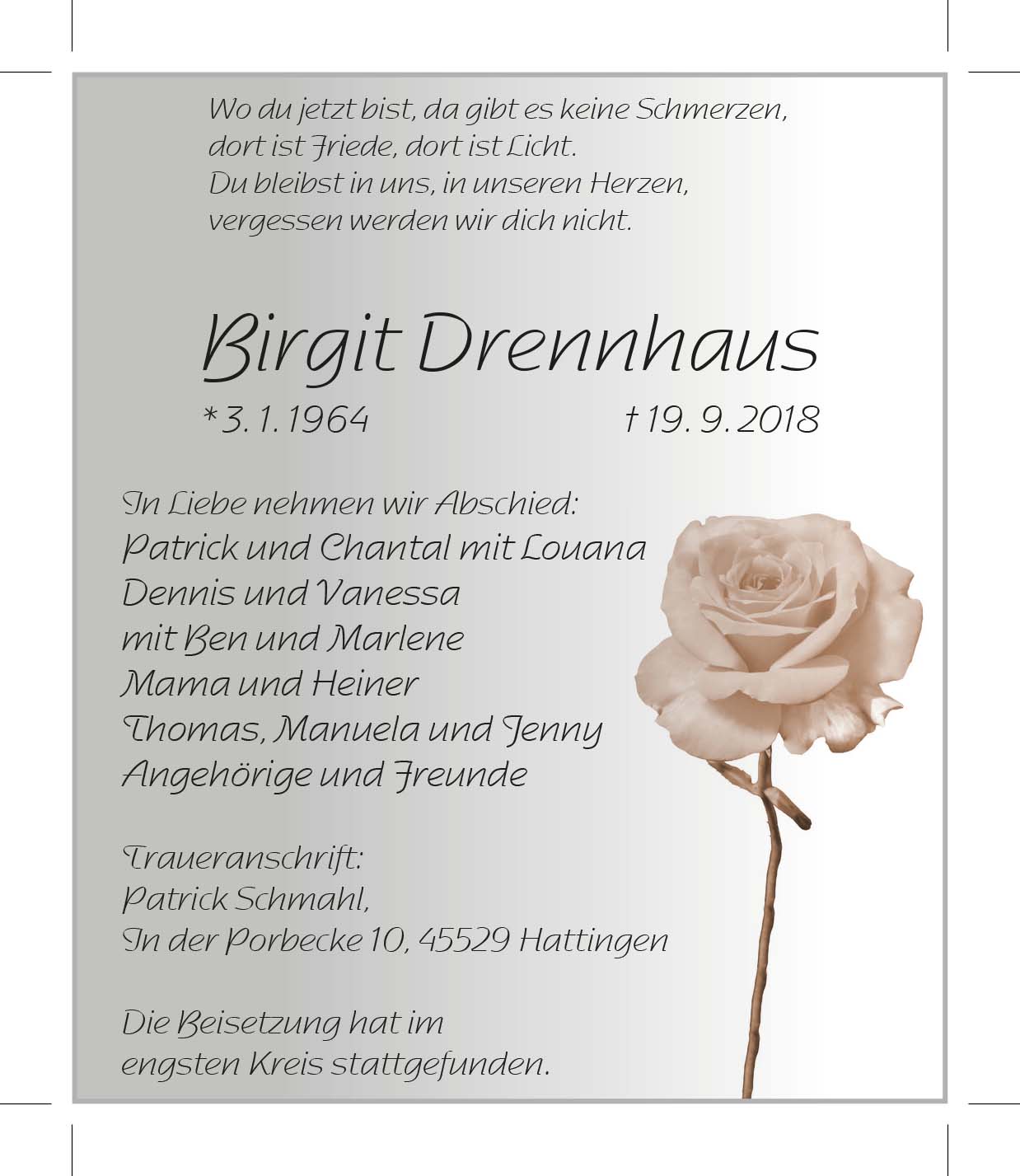 Birgit Drennhaus † 19. 9. 2018