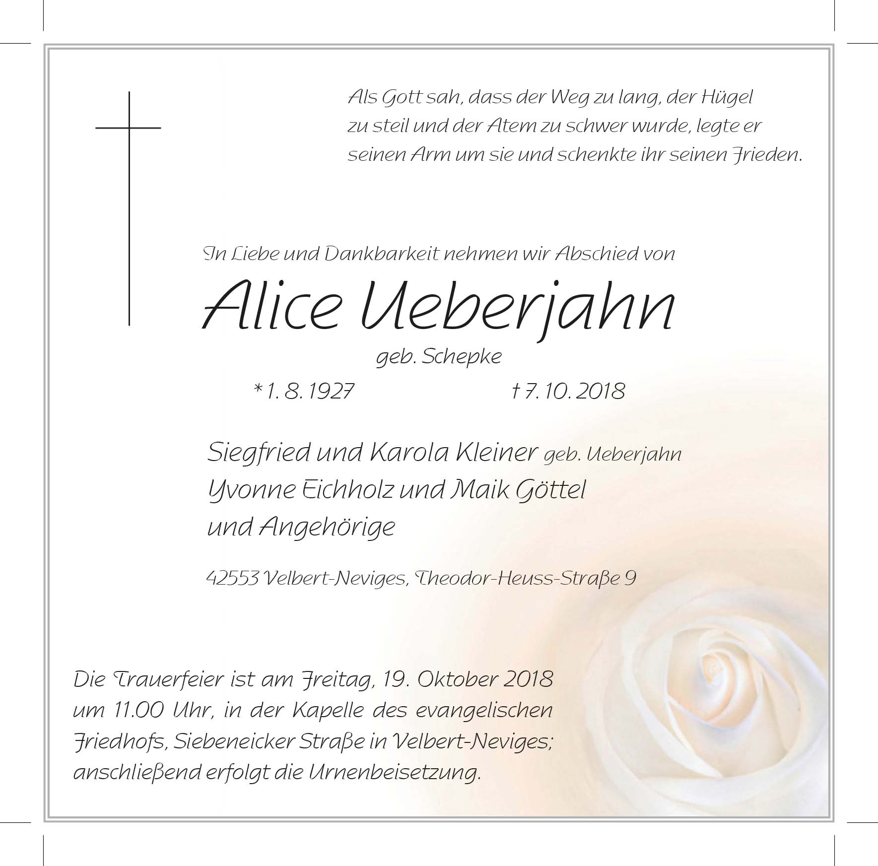 Alice Ueberjahn † 7. 10. 2018
