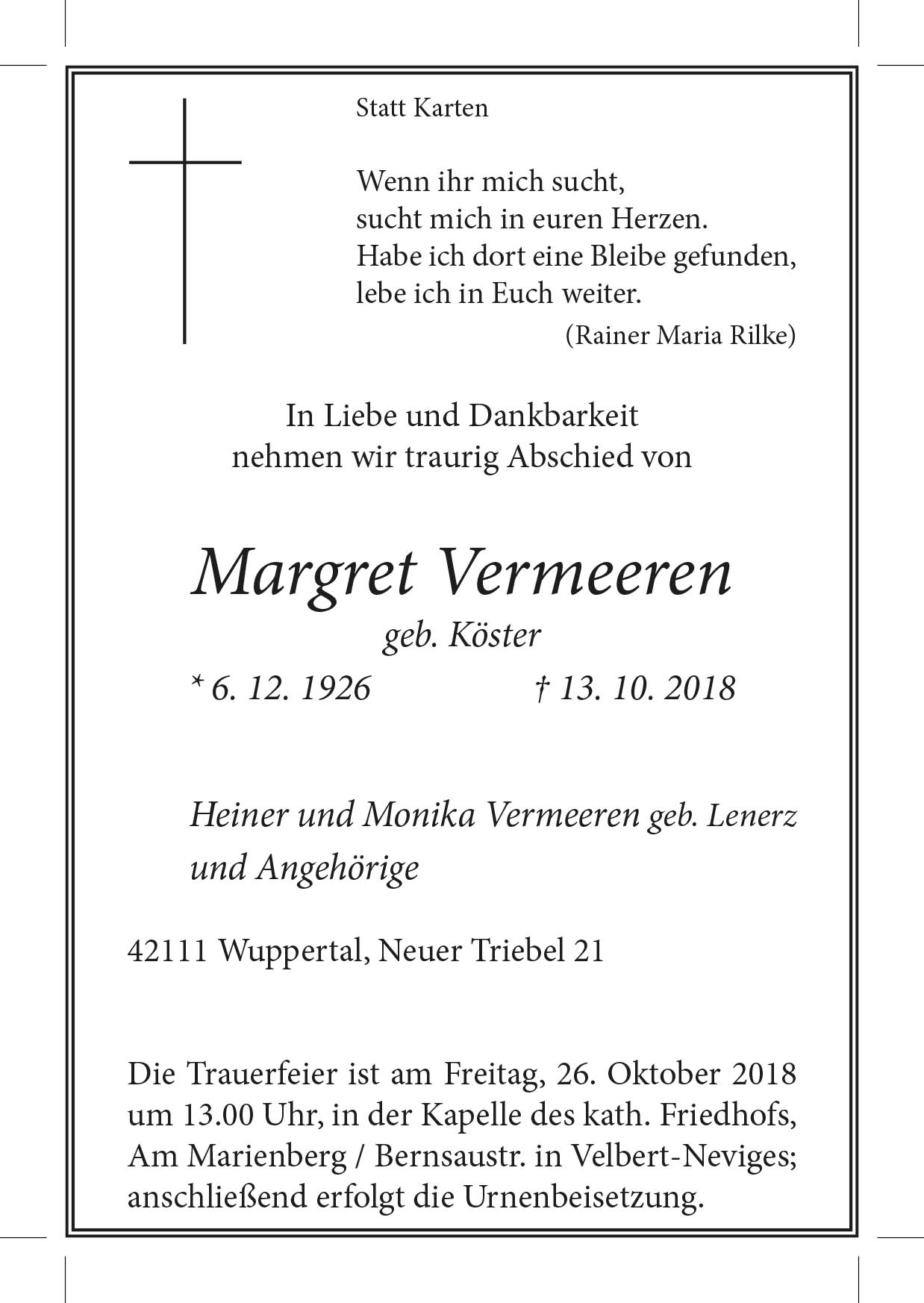 Margret Vermeeren † 13. 10. 2018