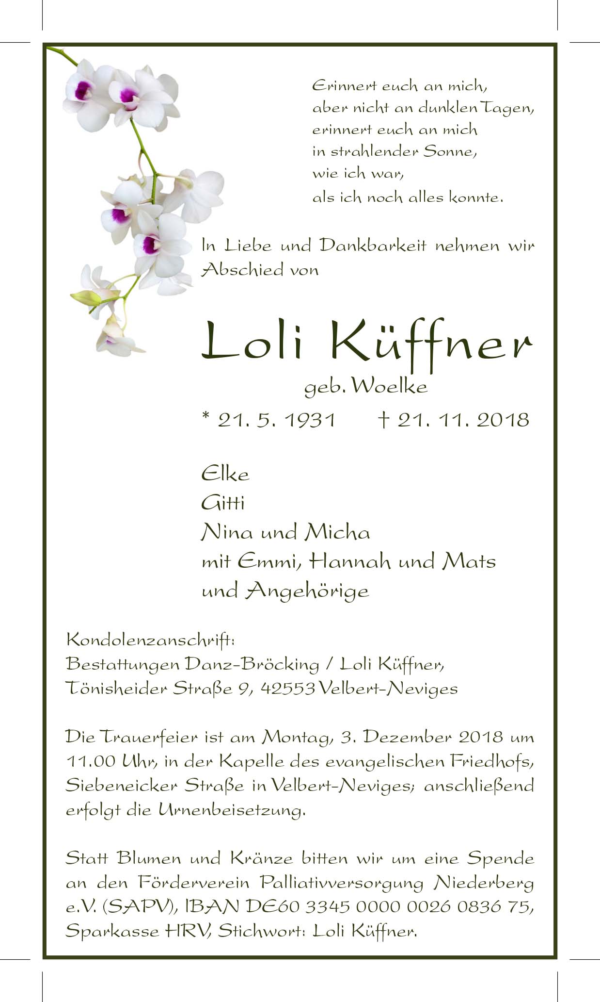 Loli Küffner † 21. 11. 2018