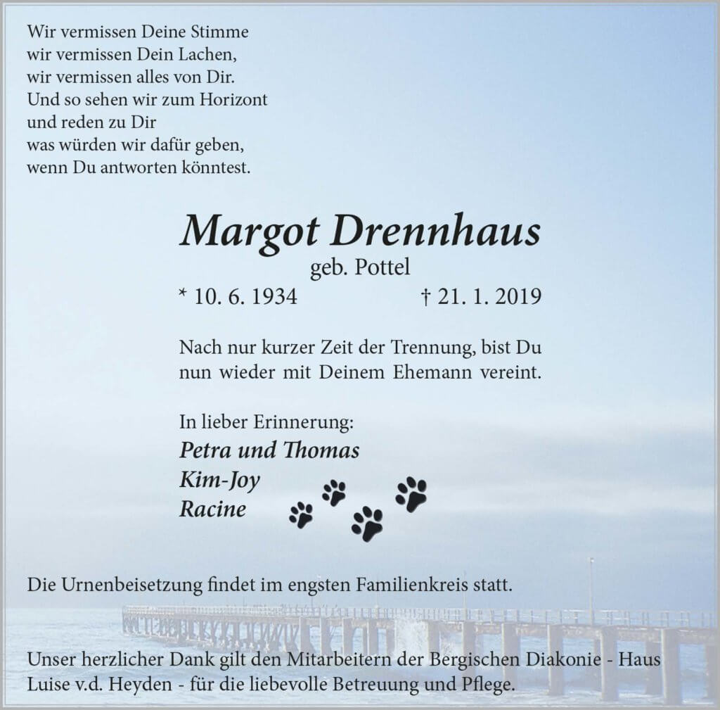 Margot Drennhaus † 21. 1. 2019