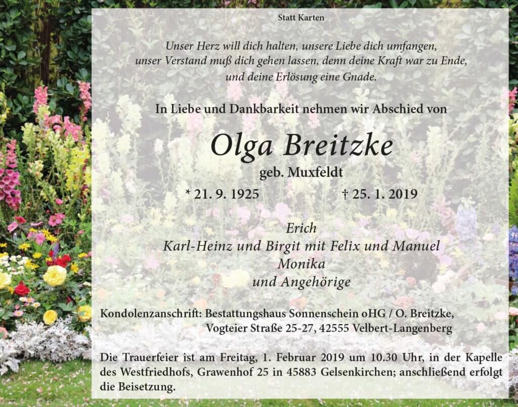 Olga Breitzke † 25. 1. 2019