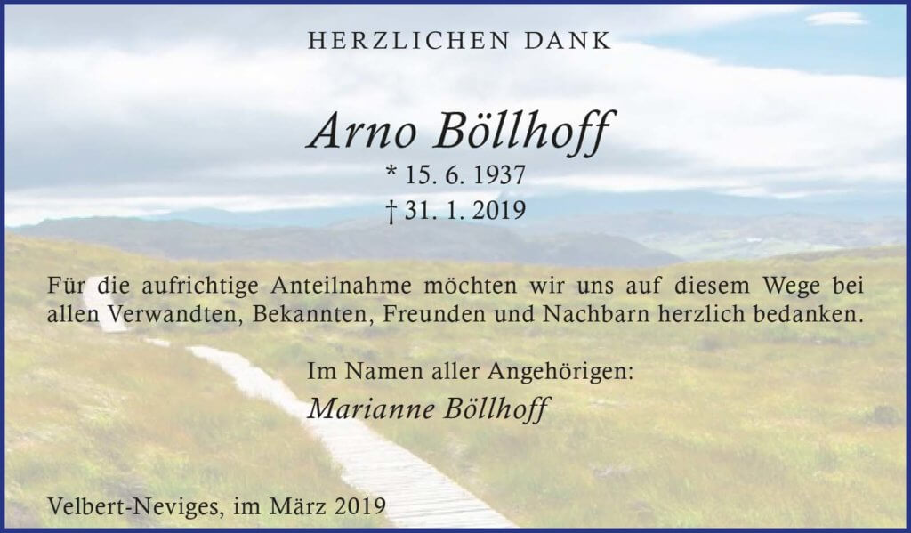 Arno Böllhoff -Danksagung-
