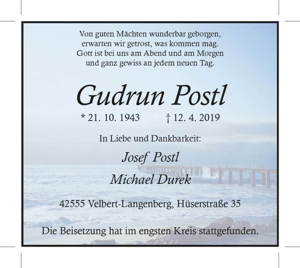 Gudrun Postl † 12. 4. 2019