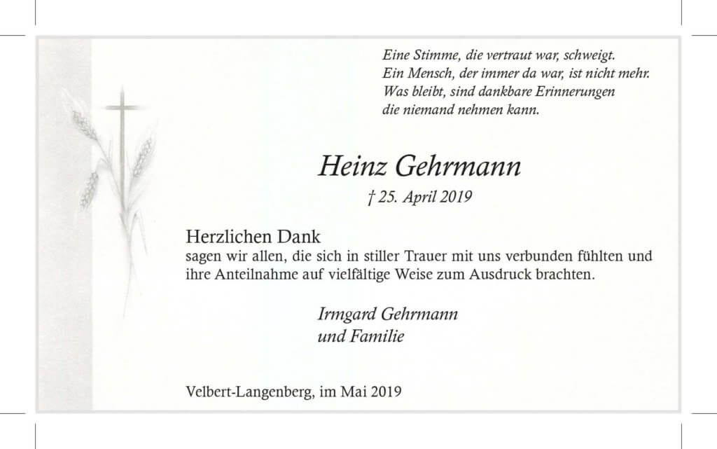 Heinz Gehrmann -Danksagung-