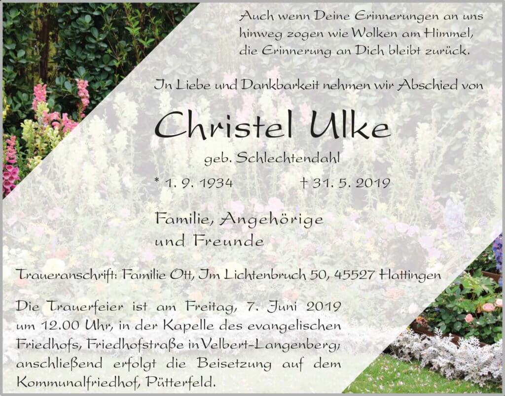 Christel Ulke † 31. 5. 2019