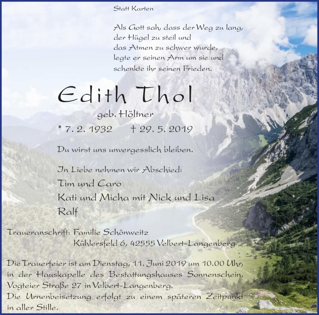 Edith Thol † 29. 5. 2019