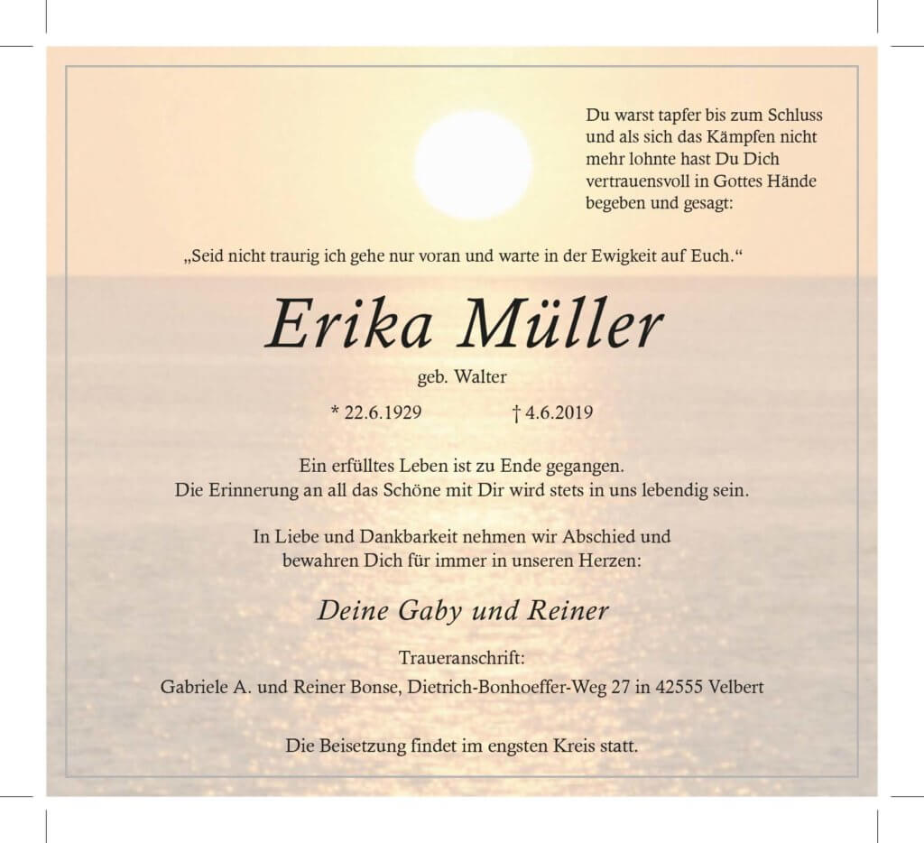 Erika Müller † 4. 6. 2019
