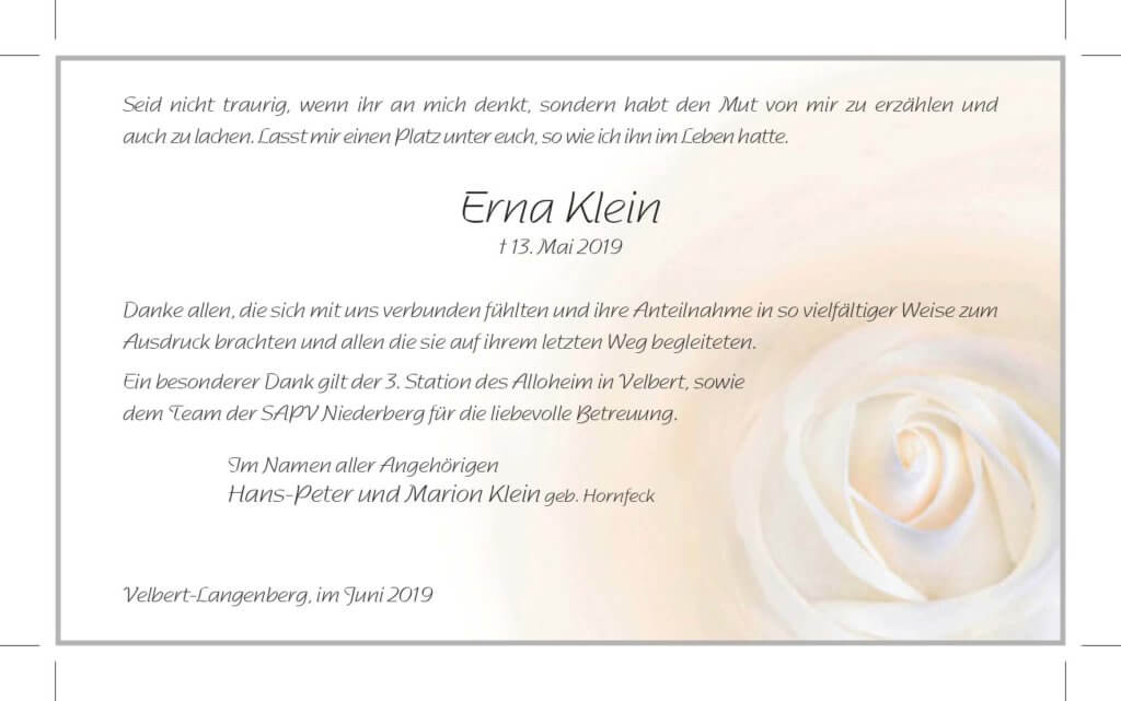 Erna Klein -Danksagung-