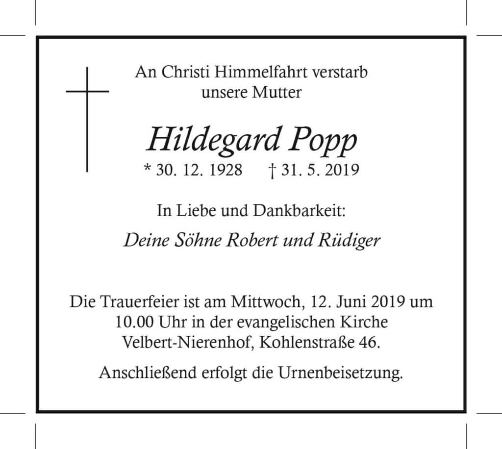 Hildegard Popp † 31. 5. 2019