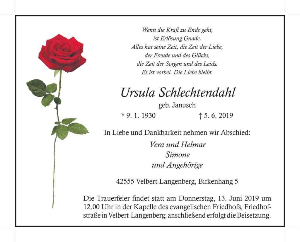 Ursula Schlechtendahl † 5. 6. 2019