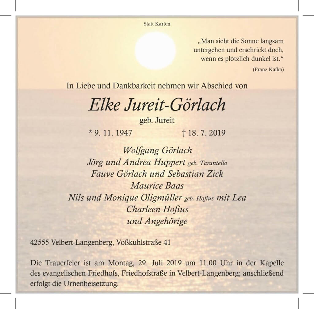 Elke Jureit-Görlach † 18. 7. 2019