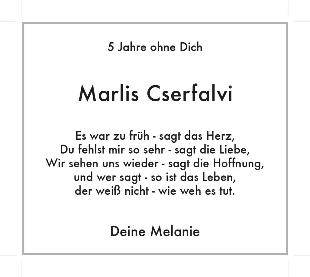 Marlis Cserfalvi -5. Jahresgedächtnis-