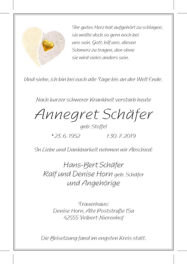 Annegret Schäfer † 30. 7. 2019