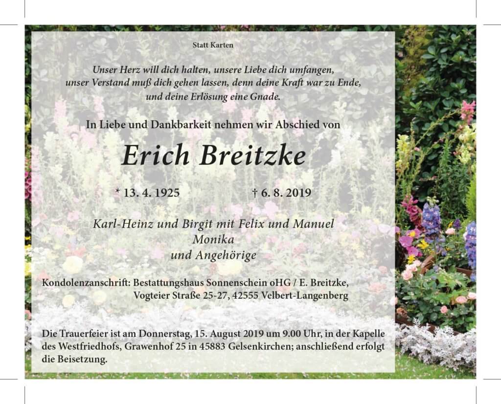 Erich Breitzke † 6. 8. 2019