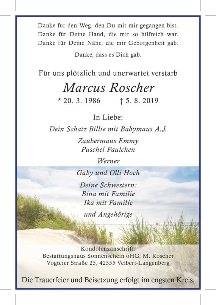 Marcus Roscher † 5. 8. 2019