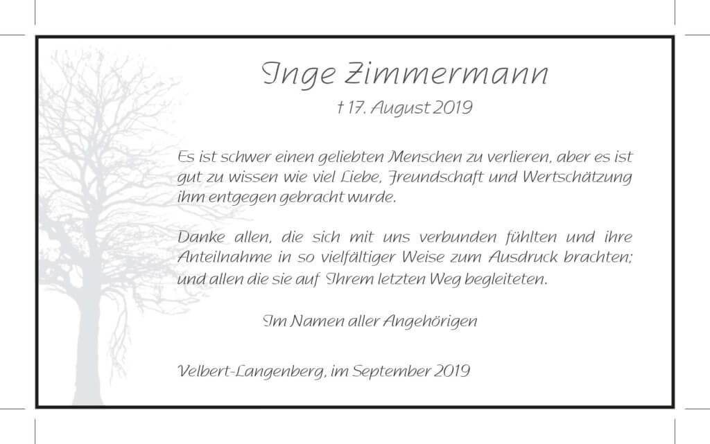 Inge Zimmermann -Danksagung-