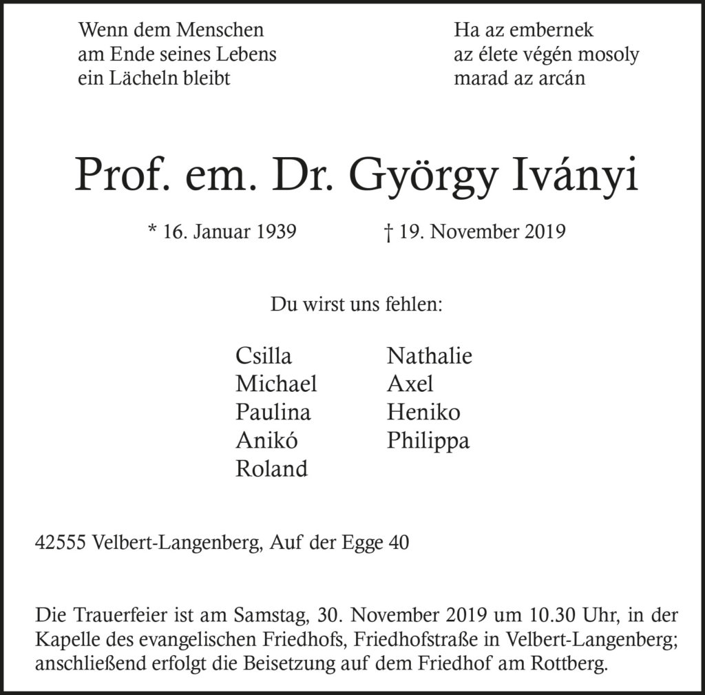 Prof. em. Dr. György Iványi † 19. 11. 2019