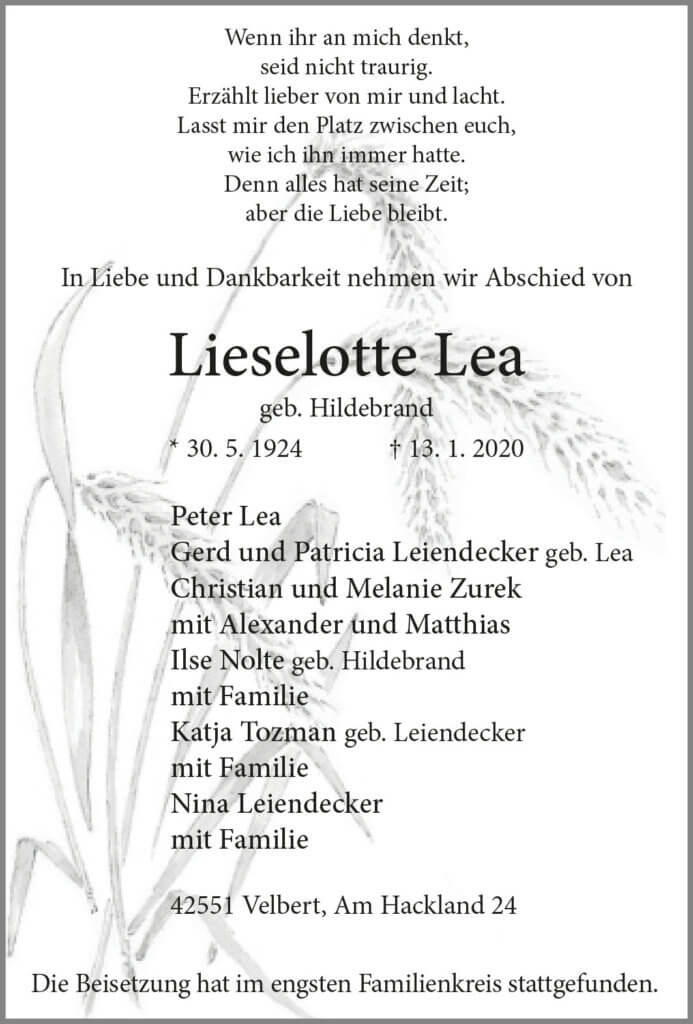 Lieselotte Lea † 13. 1. 2020