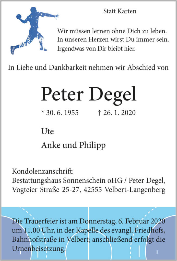 Peter Degel † 26. 1. 2020