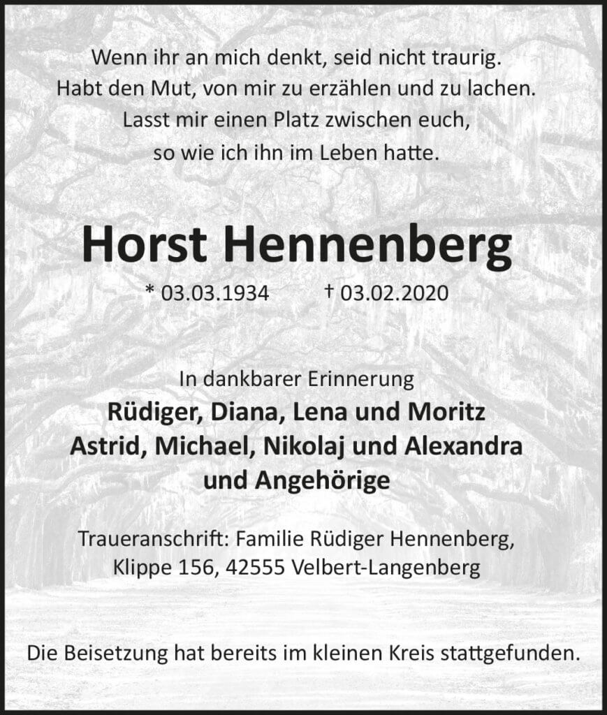 Horst Hennenberg † 3. 2. 2020
