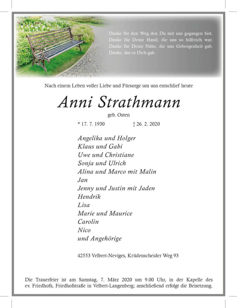 Anni Strathmann † 26. 2. 2020