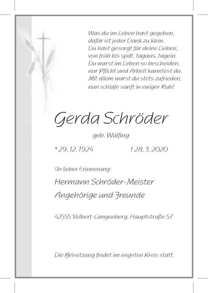 Gerda Schröder † 28. 3. 2020