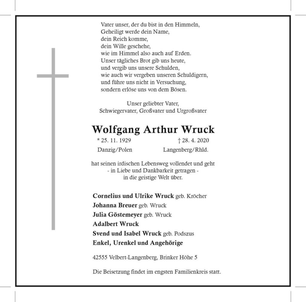 Wolfgang Arthur Wruck † 28. 4. 2020