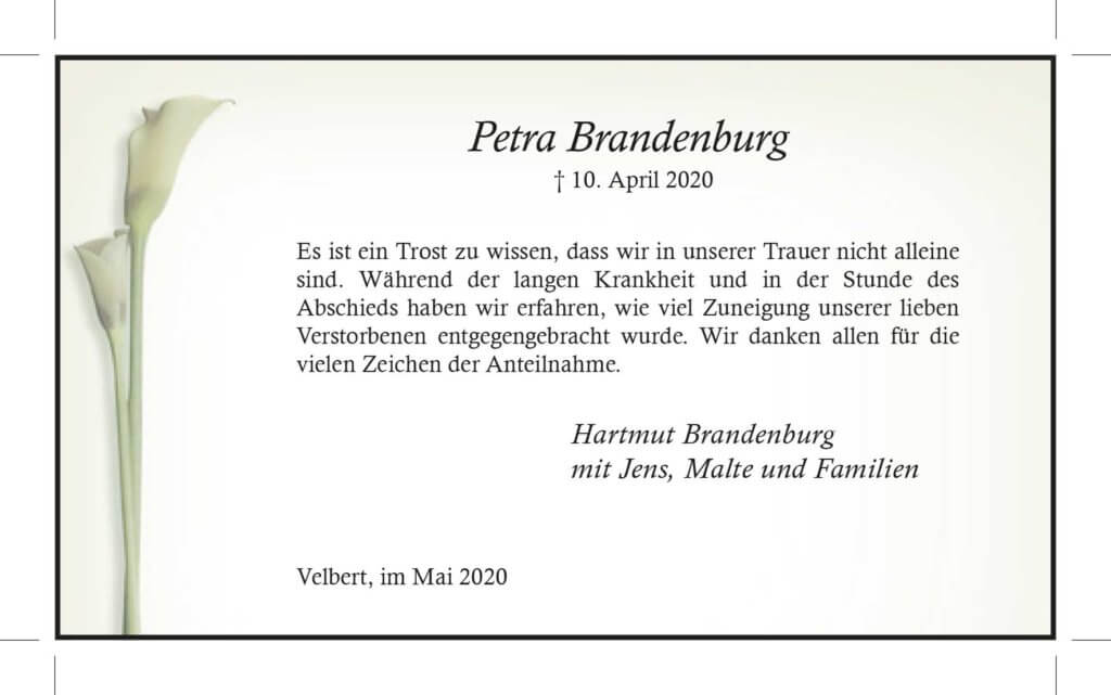 Petra Brandenburg -Danksagung-