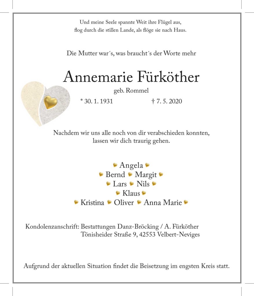 Annemarie Fürköther † 7. 5. 2020
