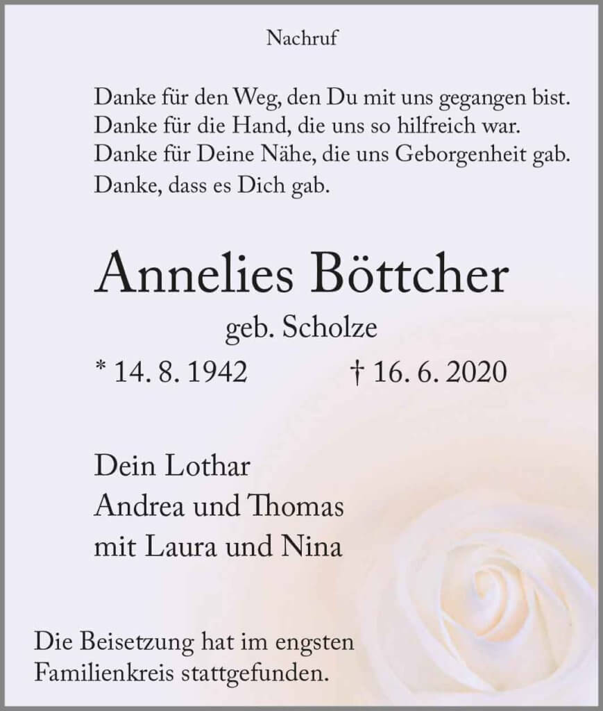Anneliese Böttcher † 16. 6. 2020