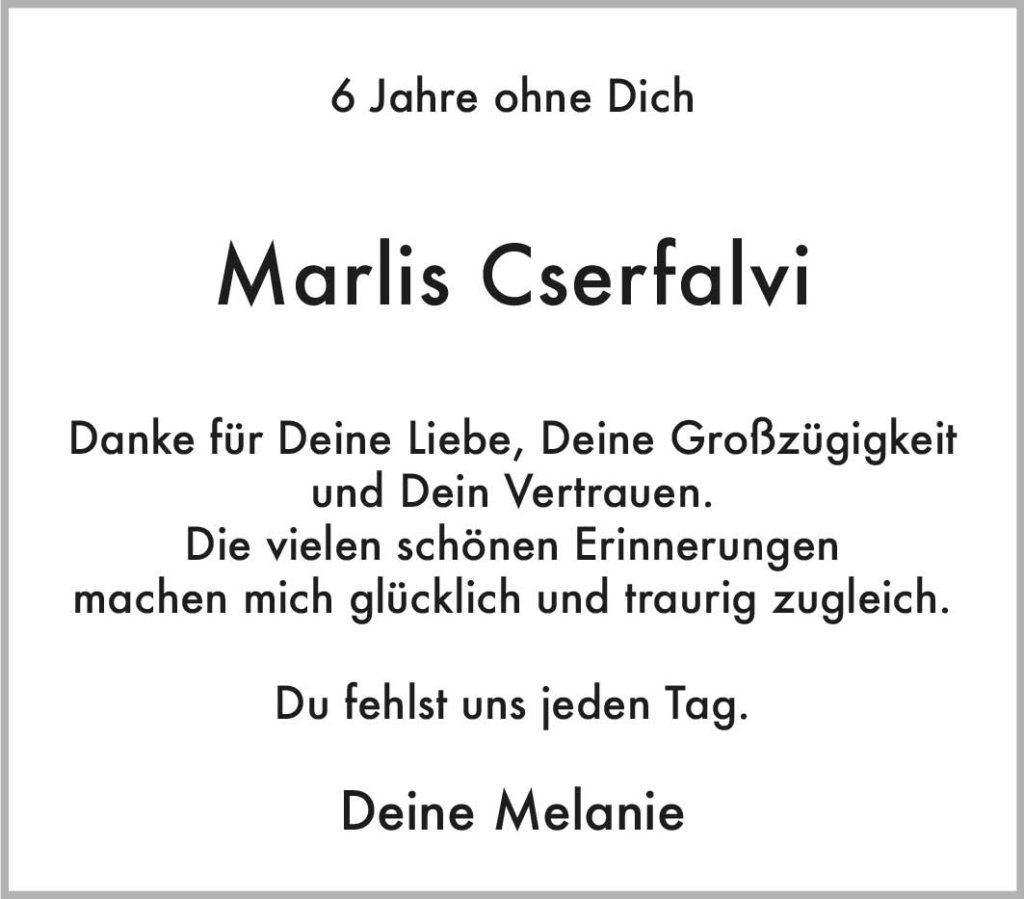 Marlis Cserfalvi -6. Jahresgedächtnis-