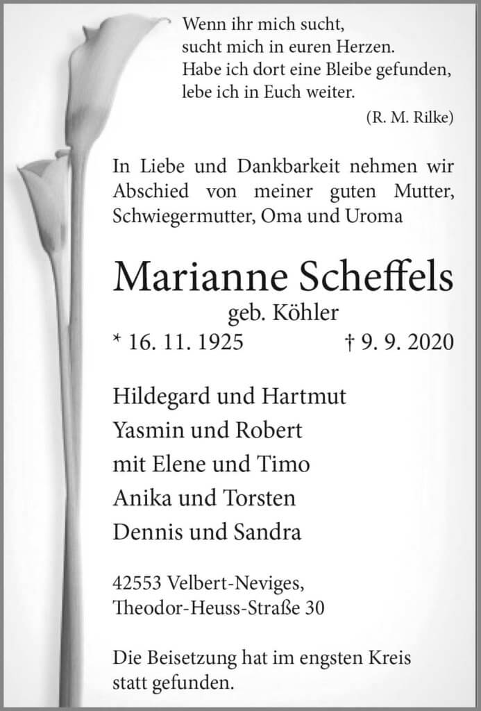 Marianne Scheffels † 9. 9. 2020