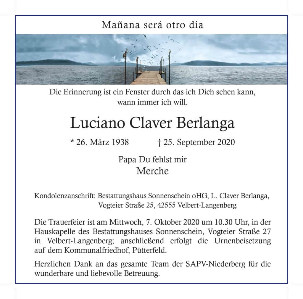 Luciano Claver Berlanga † 25. 9. 2020