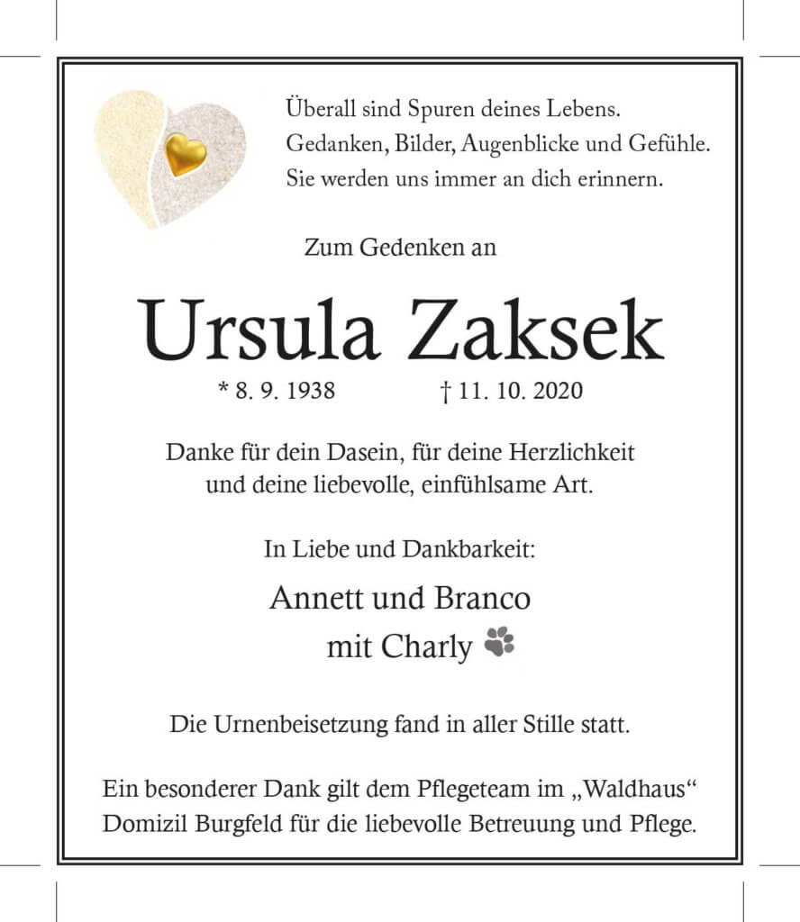 Ursula Zaksek † 11. 10. 2020