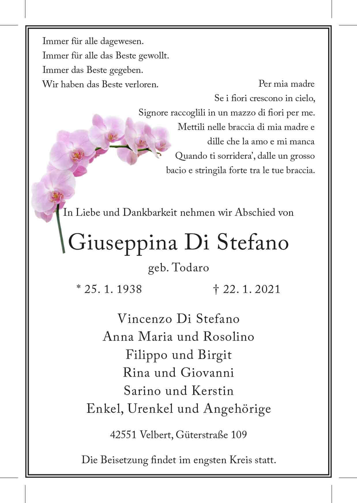 Giuseppina Di Stefano † 22. 1. 2021