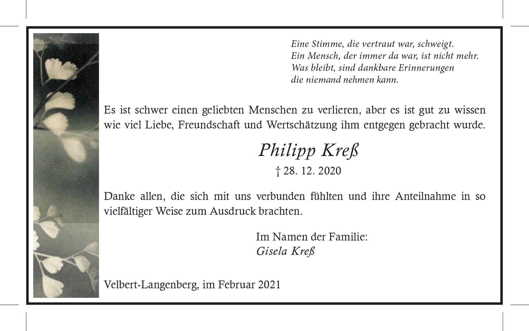 Philipp Kreß -Danksagung-