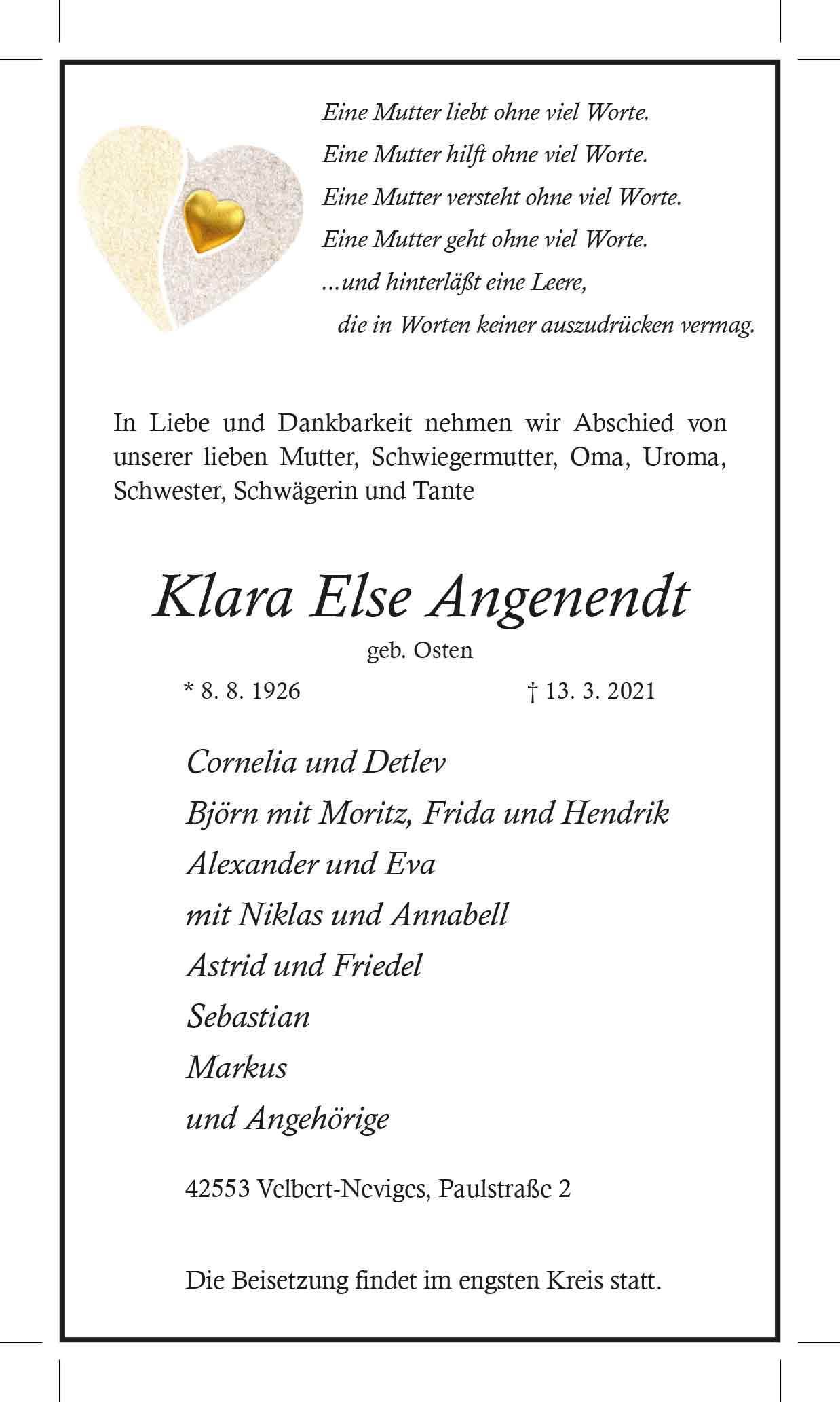 Klara Else Angenendt † 13. 3. 2021