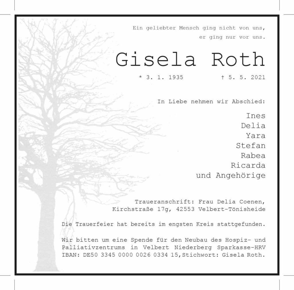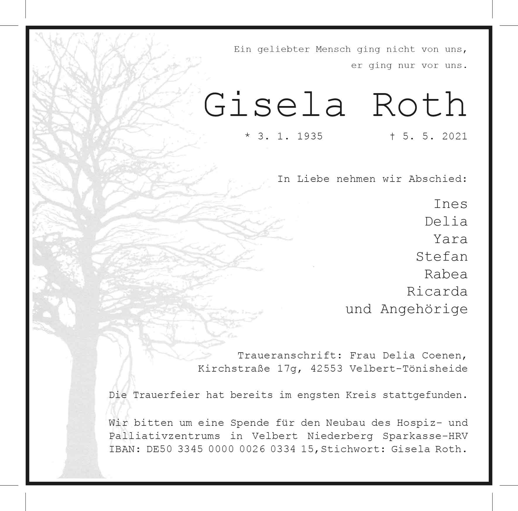 Gisela Roth † 5. 5. 2021