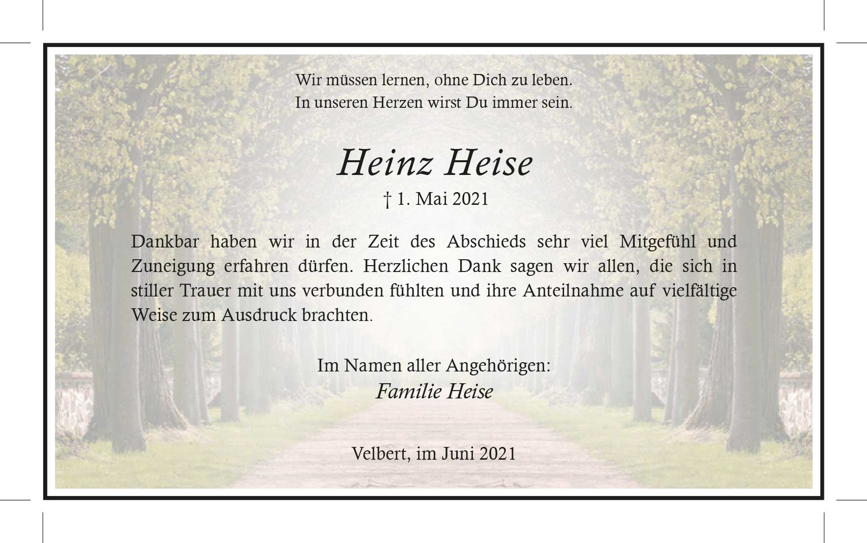 Heinz Heise -Danksagung-