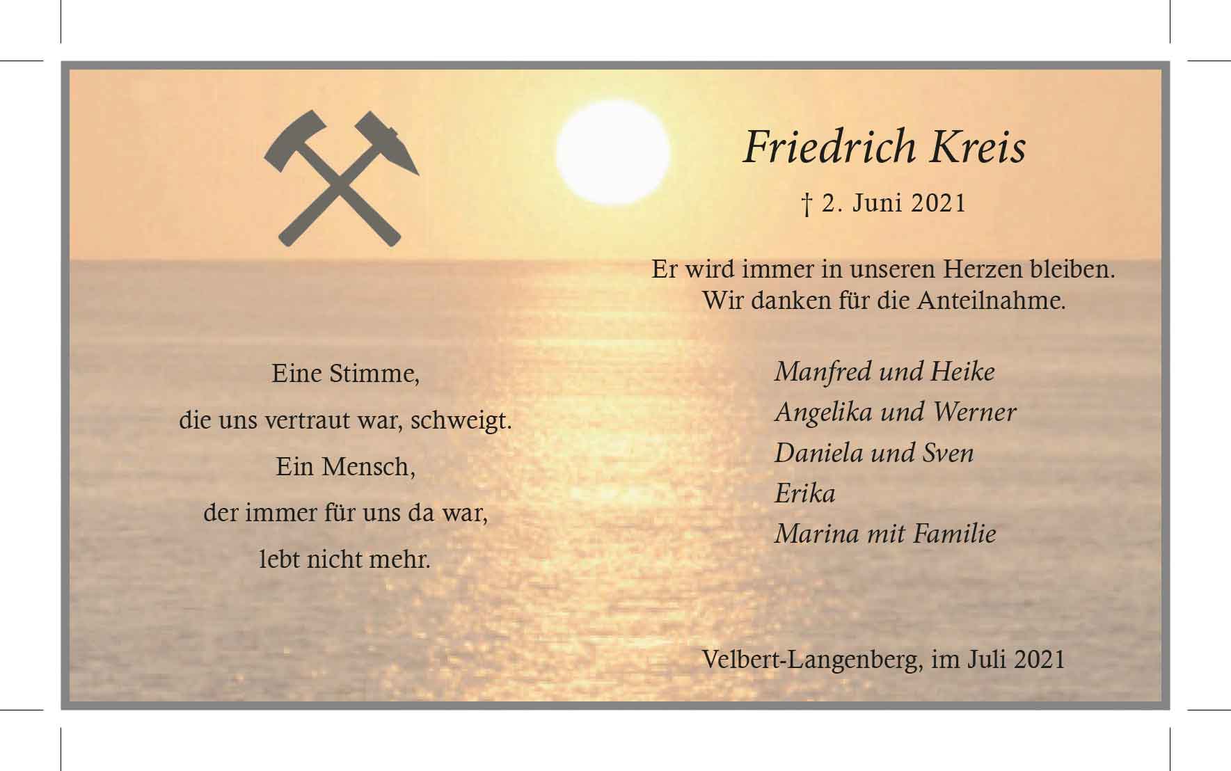 Friedrich Kreis -Danksagung-