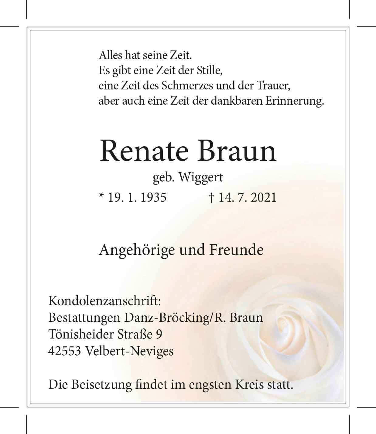 Renate Braun † 14. 7. 2021