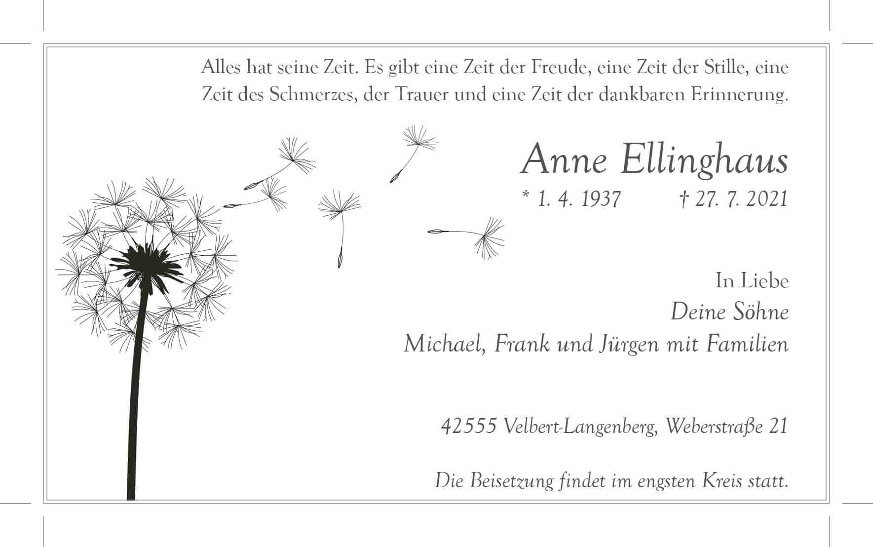 Anne Ellinghaus † 27. 7. 2021