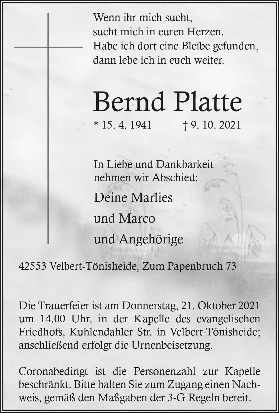 Bernd Platte † 9. 10. 2021