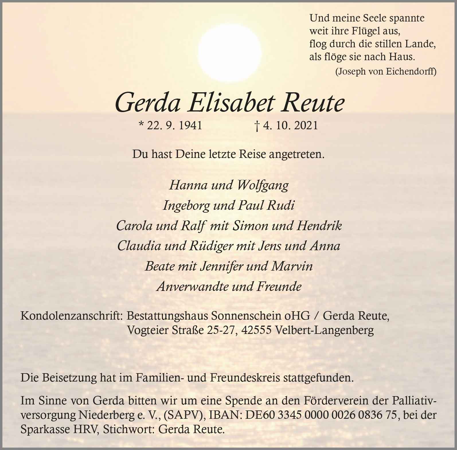 Gerda Elisabet Reute † 4. 10. 2021