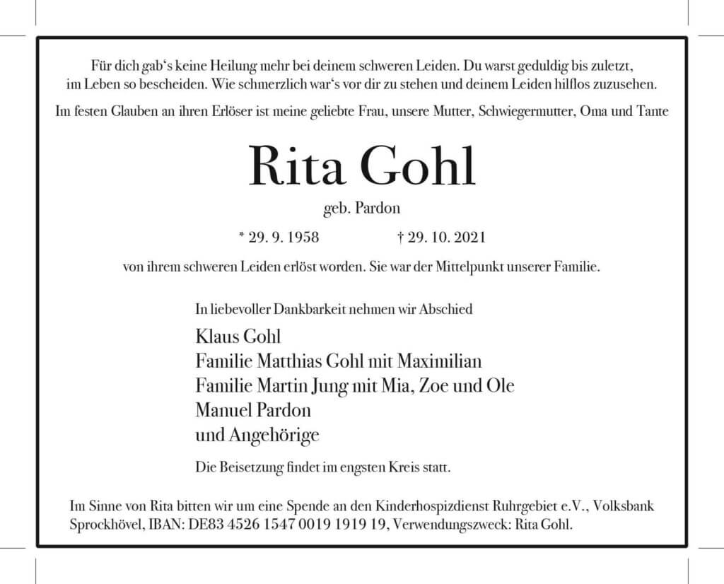 Rita Kohl † 29. 10. 2021