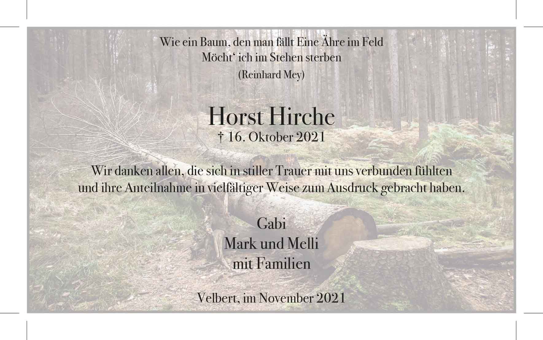 Horst Hirche -Danksagung-
